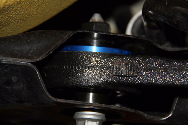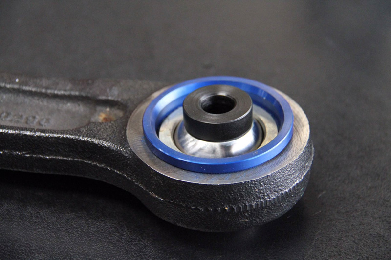 フロントロアアームの後ろ側のゴムブッシュと交換することで、純正状態で生じていた「たわみ」と「ねじれ」を抑えることができ、よりダイレクトなタイヤの接地感とステアリングの動きを感じ、旋回時に安定感を向上させます。