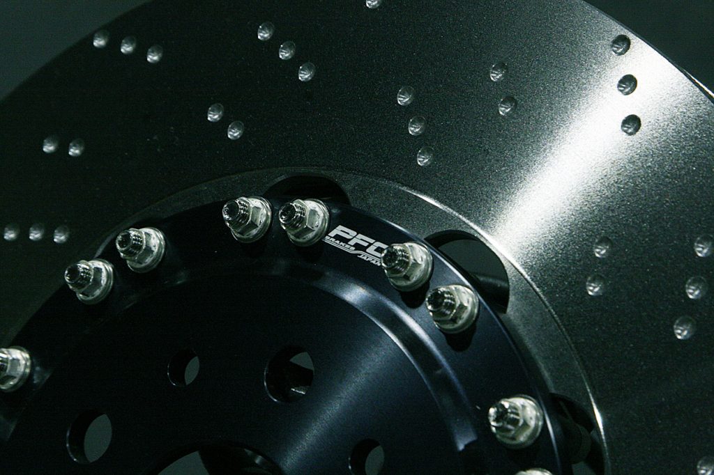 純正のドリルドローターはタッチこそ良いものの、やはりサーキットでは各ホールからクラック入ってしまいます。その改善にディンプル、2ピース、フローティング式ローターを採用。絶大な信頼を置くPFCさんに制作をお願いしました。開発テストフィールドは過酷な夏場のFSW、抜群の耐久性と極めて少ない踏力変化量を実現し、満を持しての発売です。