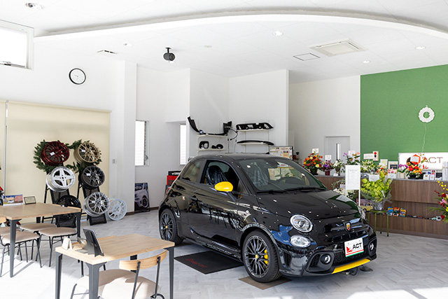 国内未導入の本国仕様車や限定車など、希少なアバルトを常時しております。アバルトのCUPカーやイベントで使用したフェラーリデコレーションのフィアットなど、他店では見ることのできない車両を展示・販売しております。(展示車両は日々変更されておりますので、オフィシャル ホームページでご確認ください。)アバルトだけでなくアルファロメオにも力を入れており、4CやGIULIAなども在庫。当店にて厳選したアルミホイール・車高調整式サスペンションなどを予め組み込んだカタチで販売する「アクトオリジナルコンプリートカー」も展示・販売しております!