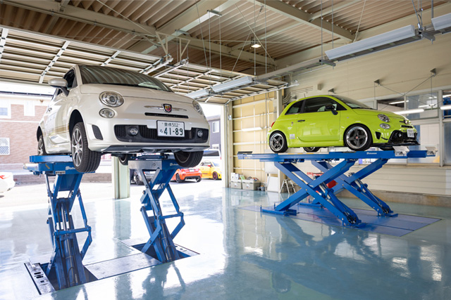 車検やメンテナンス、 チューニングもお任せ下さい!アバルトを熟知したスタッフが誠心誠意おクルマに向き合い整備させていただきます。